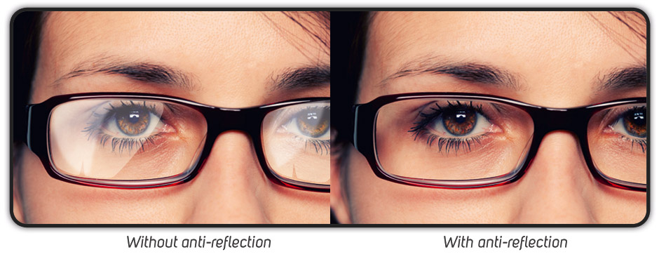 Some lens materials are manufactured with anti-reflective coating by default, while others must be applied afterward. Ask your Optometrist about how to protect your new lenses from reflections.